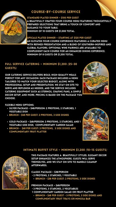 Indulge in a personalized culinary experience with passionate professional chef specializing in upscale comfort food.